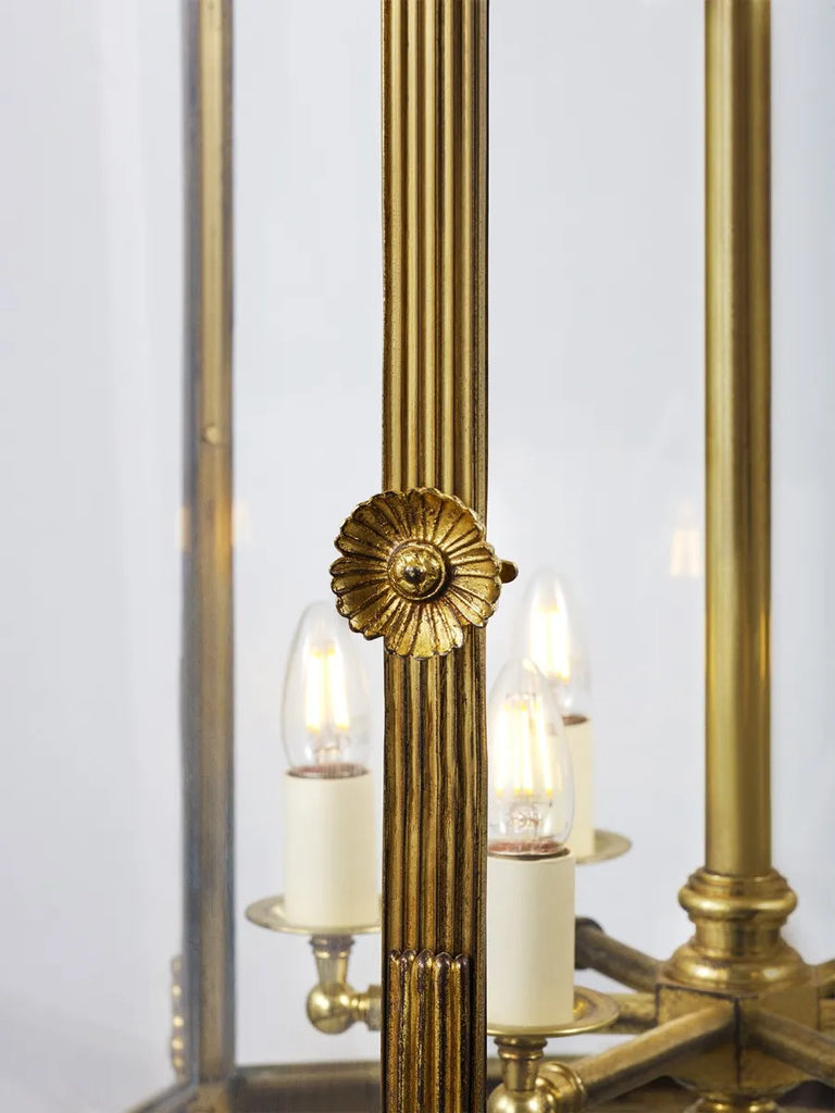 With the kind permission of the Earl of March, Collier Webb's craftsmen have carefully re-created the large Regency hanging lantern which had illuminated the Goodwood House for two hundred years. With careful diligence by their team, the elegant proportions and ornate details of over one hundred castings allowed us to bring this magnificent recreation to life. Shown here in Antique Brass, and is available in any of Collier Webbs standard finishes.