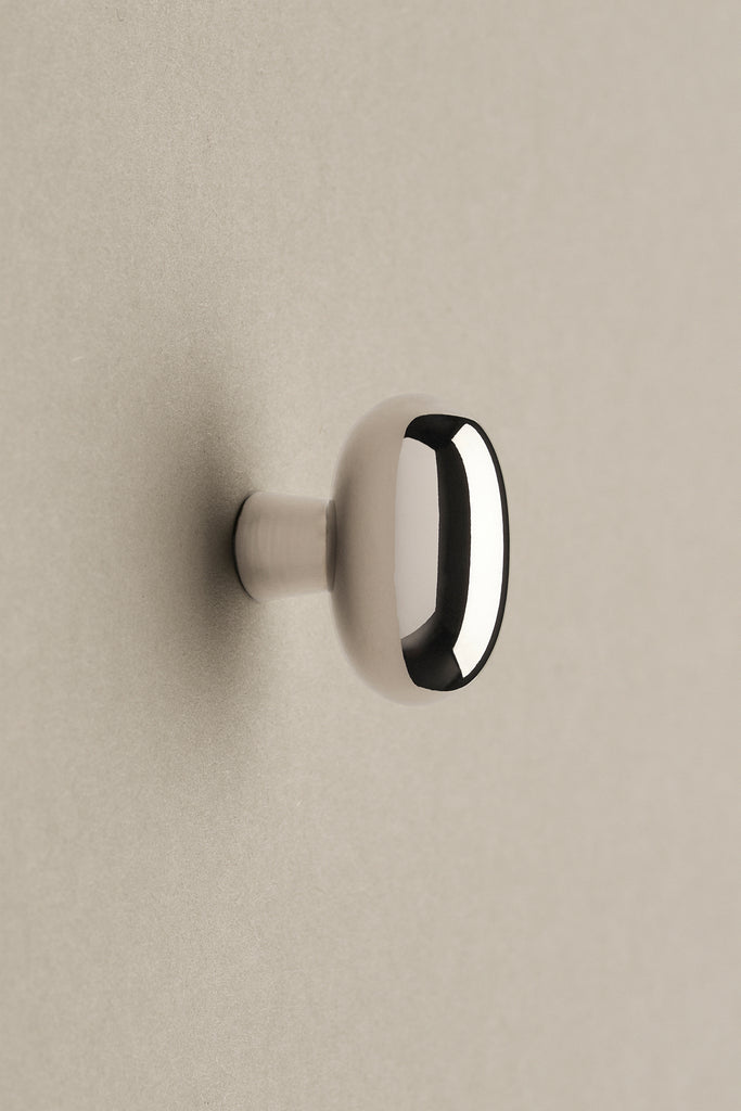 A neat mini knob, PICO BLUNT is perfect for top cabinets and smaller cabinetry, pairs dynamically with the different sizes in the BLUNT range as well as a perfect compliment to other styles from the Spaces Within collection. The polished nickel plate has a warm tone and a smooth mirrored finish. Designed in Sweden. Handmade by artisans in Florence, Italy.