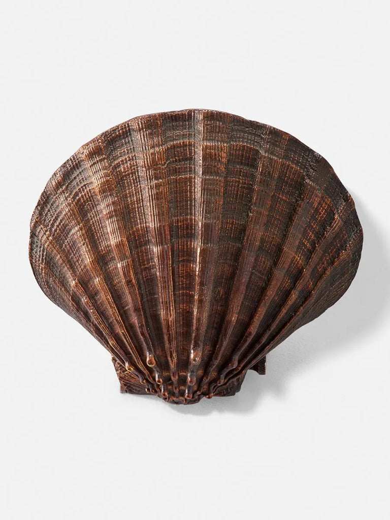 The Scallop Accent Wall Light has been moulded from a real shell, retaining all of the natural details. Its short projection makes it ideal for small spaces, stairways and alcoves. When the adjustable shade is in the upright position, it creates a small glow rendering the silhouette of the shell. Angled forwards, a wider spread of light creates a softer accent. With the diminutive projection, this light can accent even the most discerning space. Shown here in Antique Copper, the light is available in a range of metal finishes.