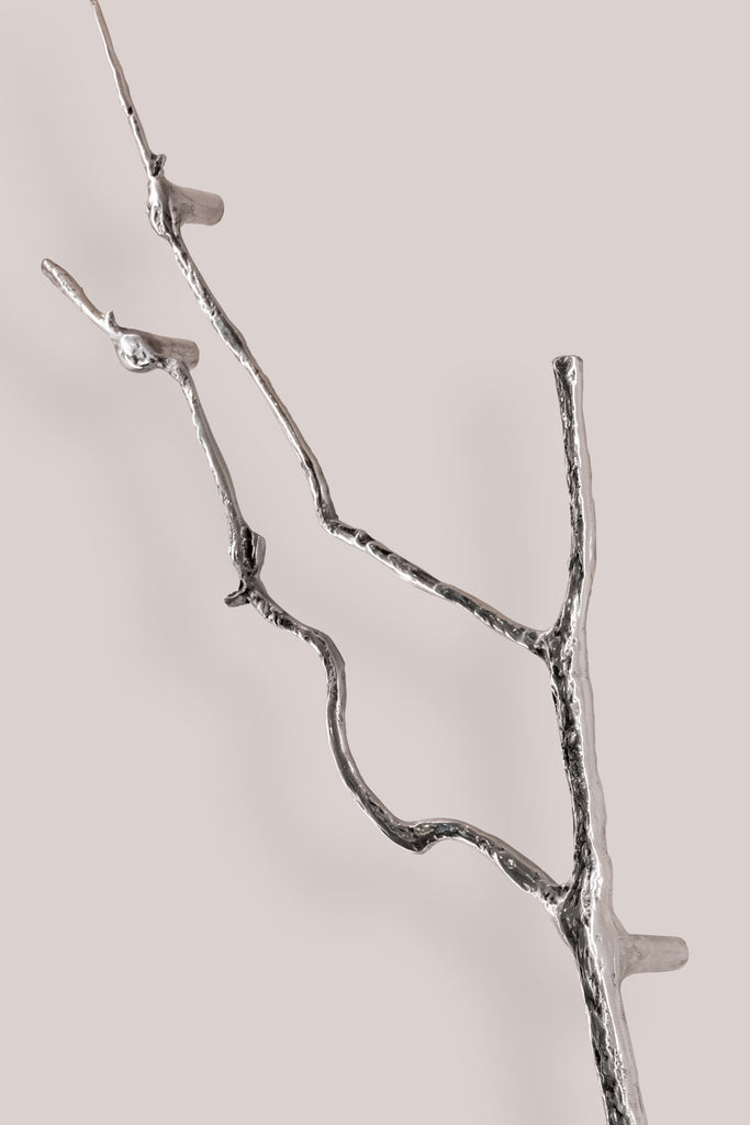 The Branch handle by Philip Watts Design is hand-cast from an actual fallen tree branch, discovered close to the factory in Nottingham, UK. Made to order in the UK cast from the purest forms of brass, bronze and aluminium, and measuring almost 1.5m in height, the Branch is a real statement piece. Aged and semi aged finishes are available on brass and bronze and will continue to age beautifully over time. Aluminium, shown here, ideal for interior installations, is not recommended for external use. Handles are available both left and right handed, and as back-to-back pairs.