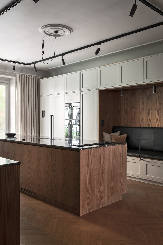 A pendant spotlight made from graphite powder coated metal with solid smoked bronze detailing. Inspired by a motorbikes exhaust, the spotlight features Buster + Punch's signature cross-knurl baffle and machined coin screws, both made from solid brass with a smoked bronze brush finish. The baffle captures light and creates a delicate metallic glow, whilst a honeycomb filter emits a precise, non-glare, directional spotlight.