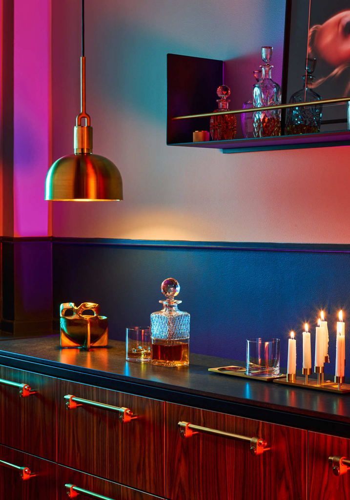 A pendant light and shade, combining machined, hand-spun and cast solid metal, all refined by hand. It features the new Buster + Punch cast forked detailing and their signature diamond-cut linear knurling. The light comes complete with a Forked-specific dimmable Buster Bulb, casting a soft ambient light.