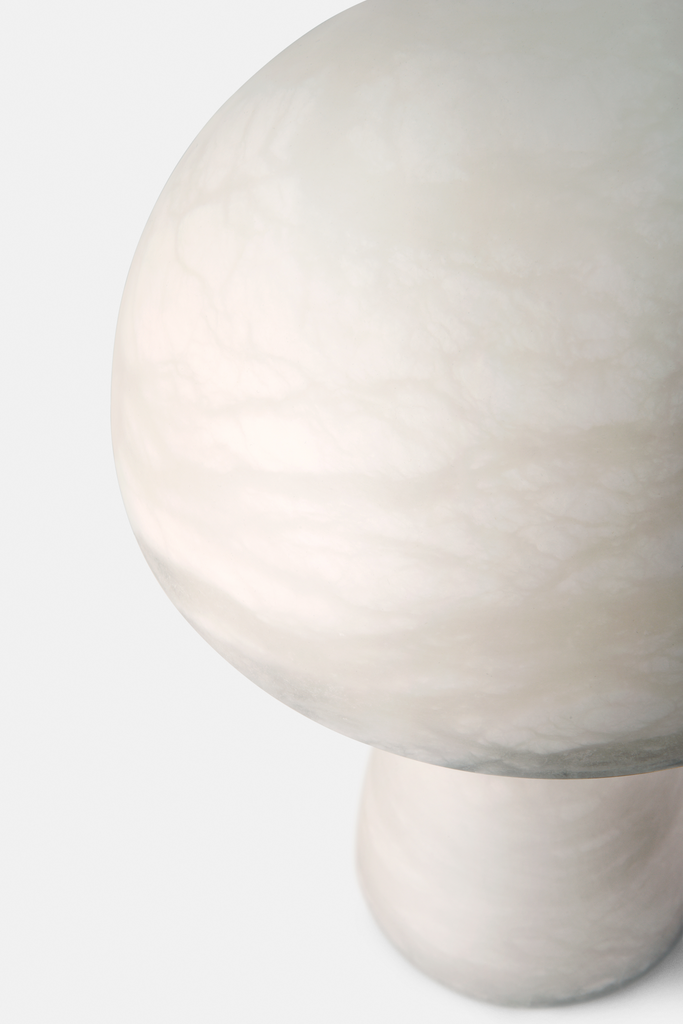The Alabaster Cep table light is crafted from the finest alabaster and uses the same sophisticated mid-century silhouette as Collier Webb's iconic Cep light. The translucency of this natural mineral makes it the ideal material for table lighting. Shown here in Antique Brass metal detail to the stem, but also available in a range of Collier Webb's metal finishes. The Alabaster Cep light is available in three sizes, small, medium and large.