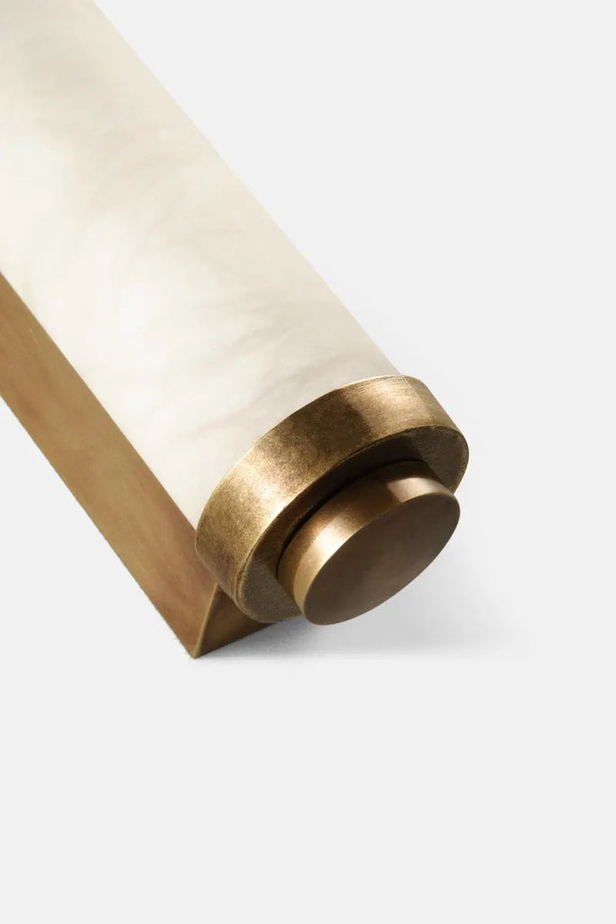 A new addition to Collier Webb's best-selling Shot Light range, this Alabaster Wall Light features a beautifully smooth alabaster shade, contrasting perfectly with hand-crafted caps. The beautiful lost-wax cast caps complement the shade perfectly. The natural properties of alabaster give each piece a subtly unique look whilst the translucency of the mineral creates a subtle atmospheric light.