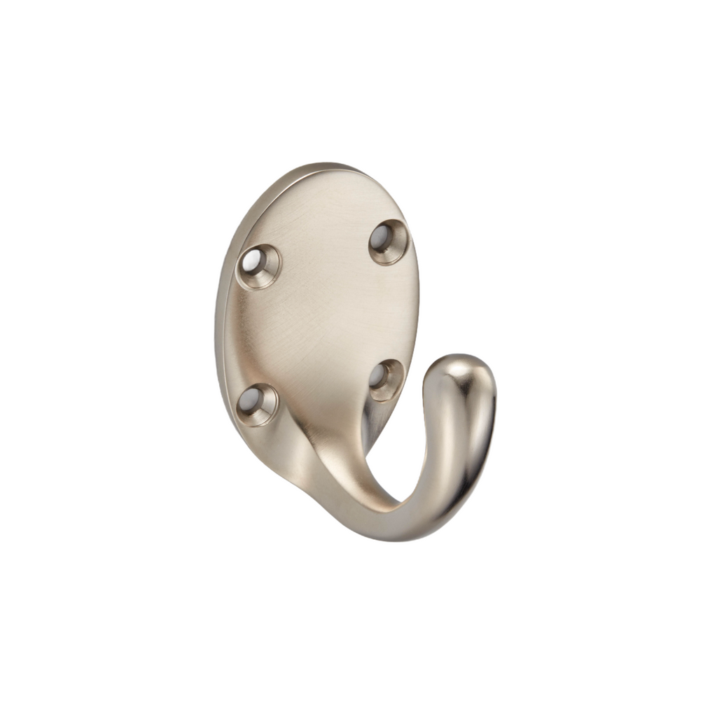 The solid brass Wardrobe Hook adds a more contemporary look and feel. Available in two sizes. Shown here in the Satin Nickel finish but also available in a range of alternative finishes.